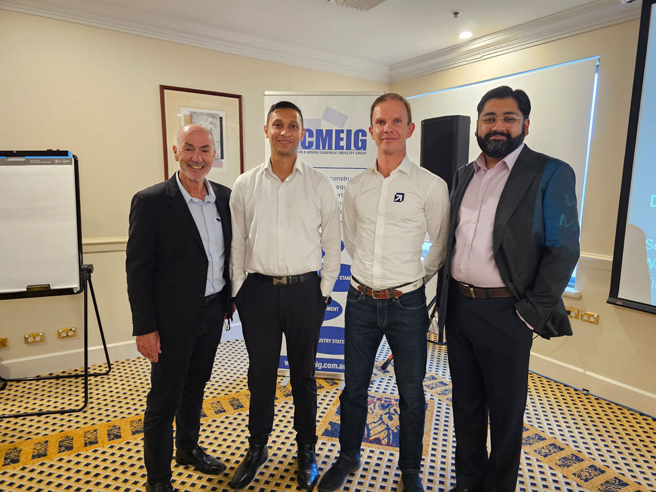Osama (Oz) Ali, Team Leader of the CMEIG Engineering Working Group (EWG), presented an update on EWG activities. He highlighted ongoing “legacy” issues such as glass impact ratings, lifting with excavators and non‑road diesel engine emissions, alongside emerging challenges including electrification, autonomy and interoperability, cybersecurity, AI and sustainability. Oz also noted the growing importance of the AS 20474 Earth‑Moving Machinery – Safety series, published in 2025, which is quickly becoming a key reference for the industry.