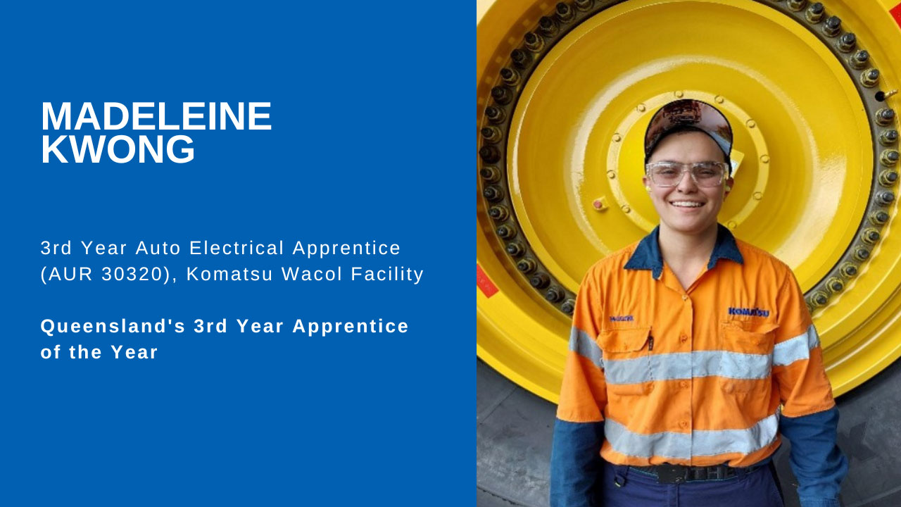 Her achievements highlight the importance of aligning industry training with the demand of emerging technologies. Congratulations to Madeleine on her success, and to Komatsu for championing a future-ready workforce.